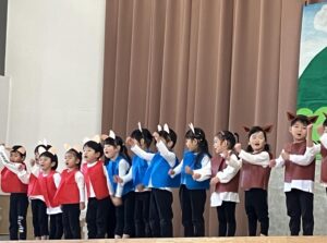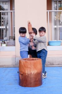秋には「おじいちゃん・おばあちゃんと遊ぼうの会」、秋祭り、4・5歳クラスの芋ほり遠足、ハロウィンがあり、冬には生活発表会、そして餅つきやクリスマス会を終えることが出来ました。