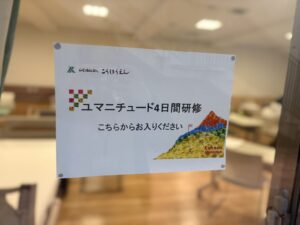 デイハウスむかいはらでは、以前からこのユマニチュードの技術をケアに取り入れてきました。今回は実践者育成研修ということで、3名の職員が代表として参加し、現場にユマニチュードの技術を持ち帰ることになりました。