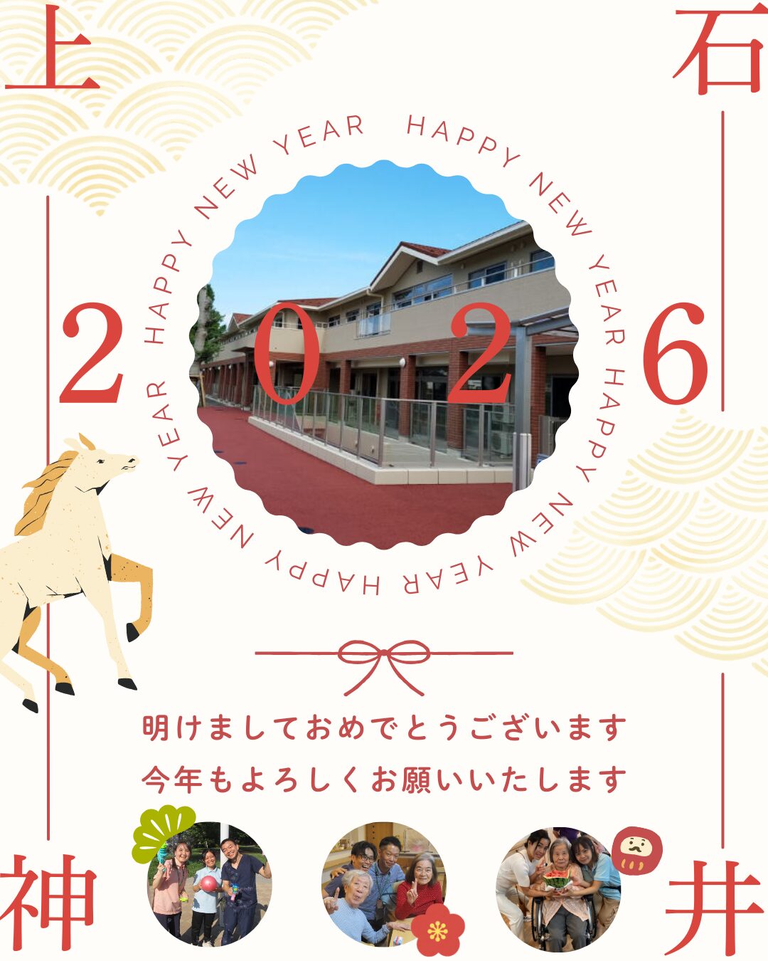 本年も、ご利用いただく皆様が安心して、笑顔で毎日をお過ごしいただけるよう、職員一同、心をひとつにして取り組んでまいります。