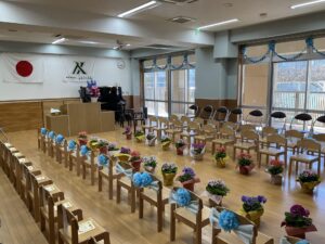 前日までの練習や準備を重ねていく中で、ドキドキ・ワクワクしている子ども達、当日は卒園証書をもらってからみんなの前で「小学校で頑張りたいこと」を堂々と発表することができました。思い出の言葉を自分たちで考え「思い出のアルバム」の歌と共に発表、入退場も胸を張って歩いていて、とても頼もしく成長した22名の子ども達でした。