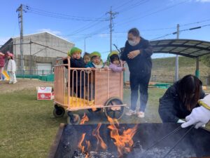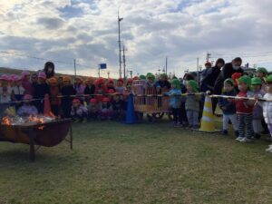お家から書初め、しめ縄等持参して炊き上げ、みんなで煙をあびました。