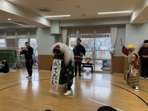 「和の音スタジオ めでたい」の皆様が”江戸めでたい獅子”を披露して下さり、迫力のある獅子舞の姿に職員一同大変感銘を受けました。