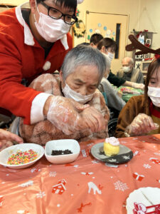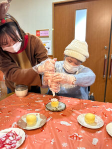 今年はケーキバイキングではなく、ご利用者がデコレーションしてケーキ作りを楽しまれました。