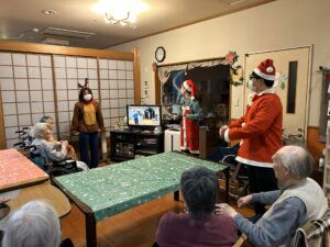 ステキなサンタさんとかわいいトナカイさんがお手伝いしました。