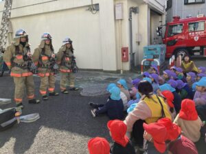1月27日(火)、3~5歳児クラスの子ども達が”大井消防署 滝王子出張所“へ行ってきました。