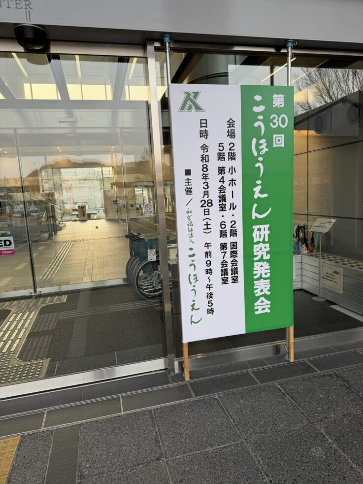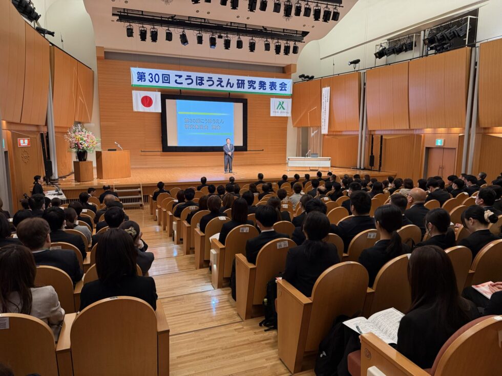 2026年3月28日(土)、「第30回こうほうえん研究発表会」を開催いたしました。今年も法人内外から多くの皆様にご参加いただきました。30回目という節目を迎えた本研究発表会は、今年も会場参加に加え、オンライン参加が可能なハイブリッド形式で開催しました。こうほうえん研究発表会は、職員が1年間にわたり調査・研究してきた成果を発表し、互いに研鑽し合える場となっています。