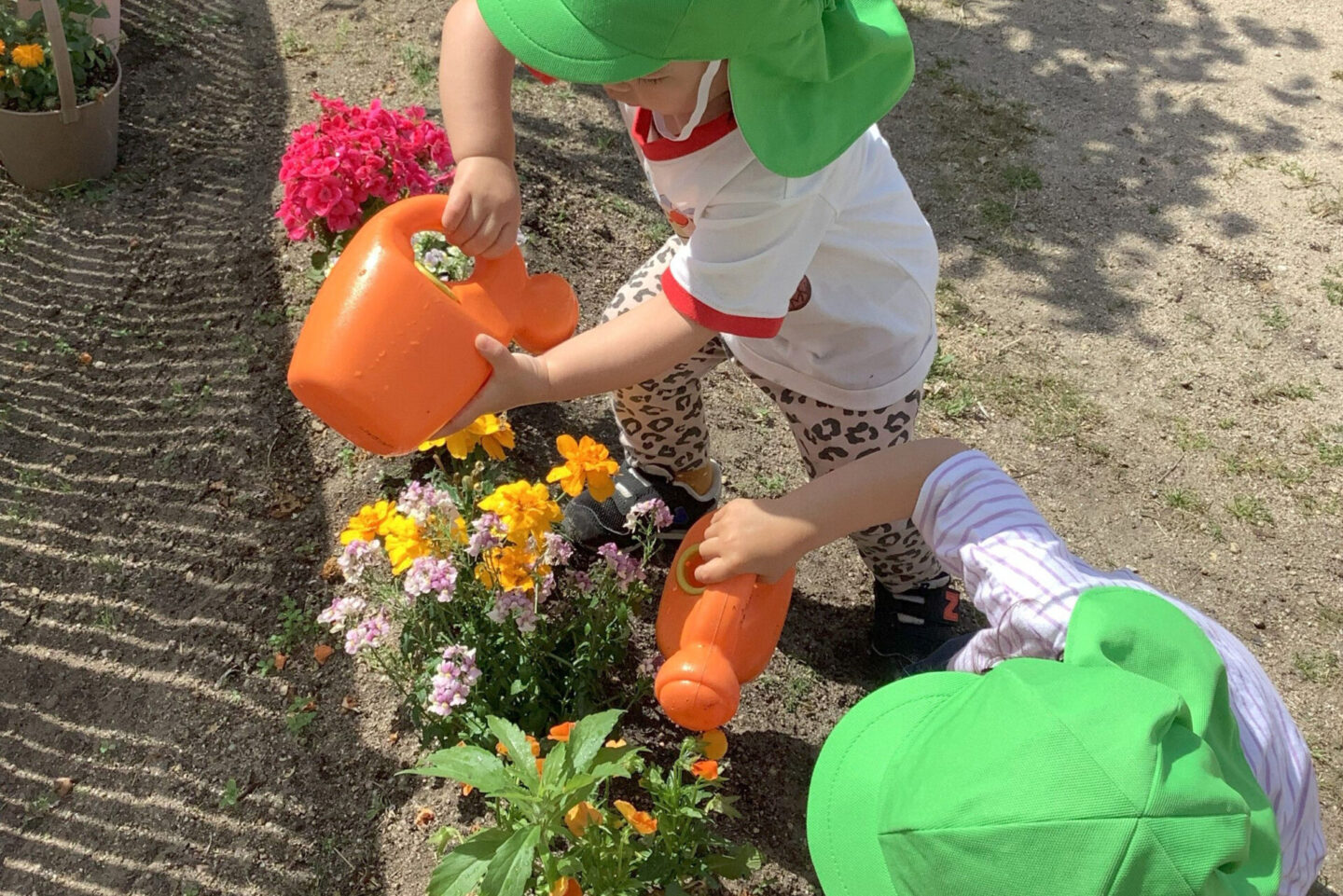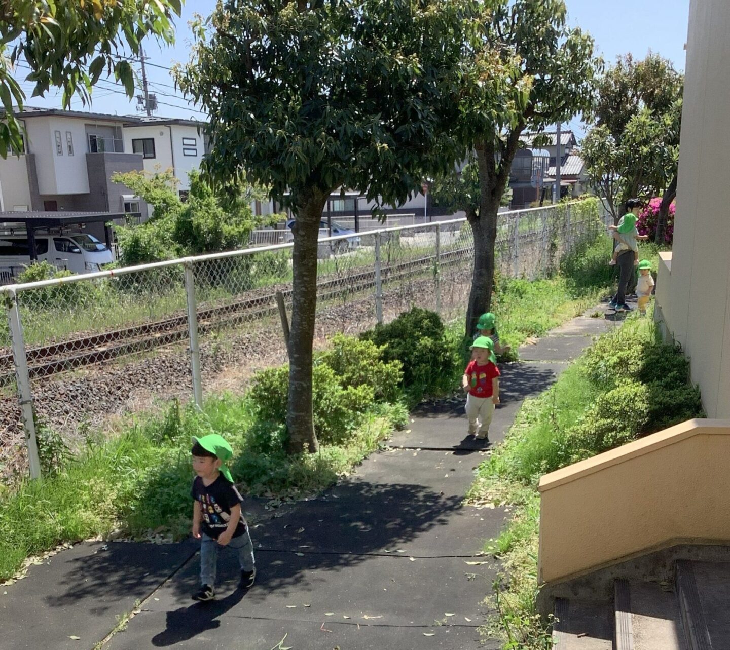 散歩車や自分の足でお散歩に出かけたり、中庭で遊んだり、草花など自然と親しみふれあいます。