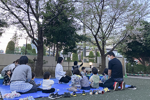 園舎は新河岸川の遊歩道沿いにあり、近くには公園も多く、安全に散歩に出掛けられ、自然に触れて遊ぶ機会が多いのも特徴です。