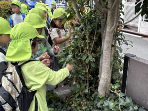 散歩先で金木犀を見つけました!「良い香りだね!』とお友だち同士で声を掛け合っていました!