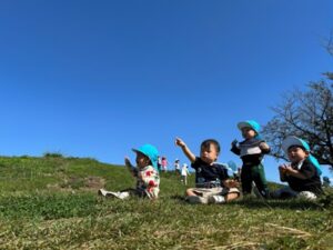 夏が過ぎて、すっかり秋の気候になりましたね。散歩に行く機会も増え、どんぐりや木の実を見つけて秋の発見を楽しんでいる子ども達です。