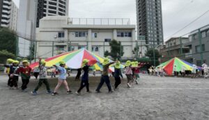 運動会に向け、組体操やパラバルーンに取り組んでみました!