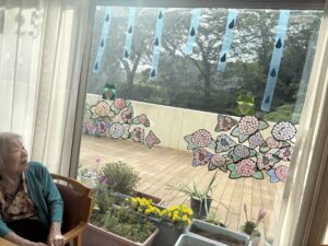 デイハウスでは、ご利用者と一緒に梅雨の装飾を作成しました。