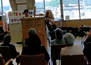 6月26日、鳥取北デイサービスセンターにてにて4人組バンド「E-NOTE」とマジシャンRISAKOさんによるライブ&マジックショーが開催されました。