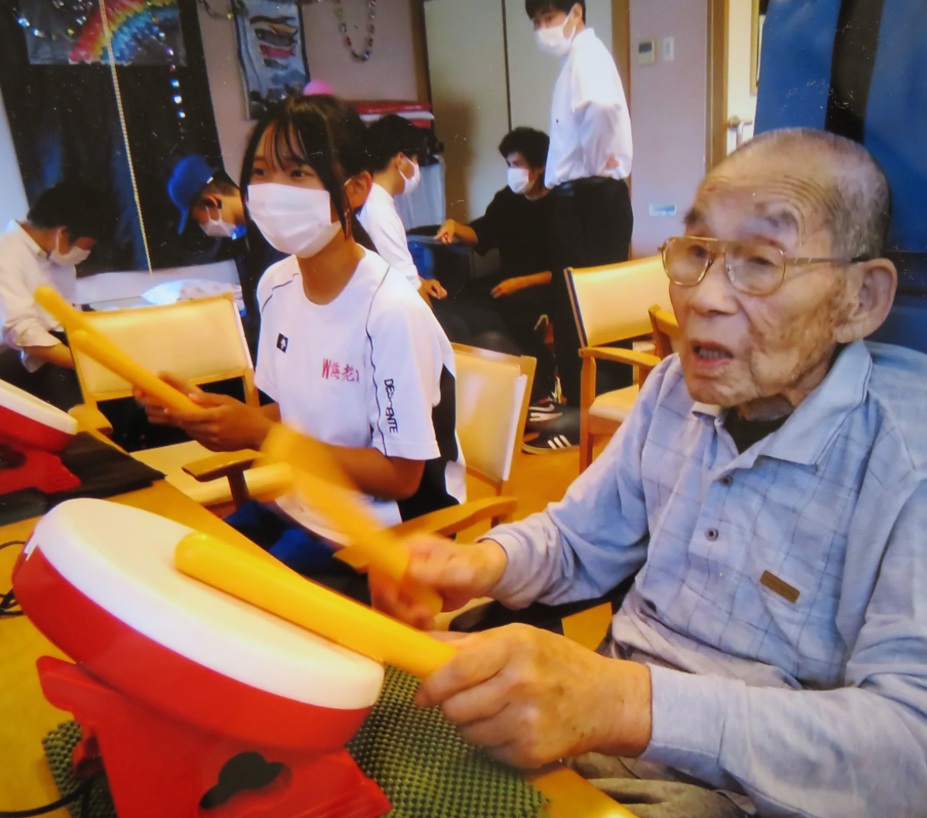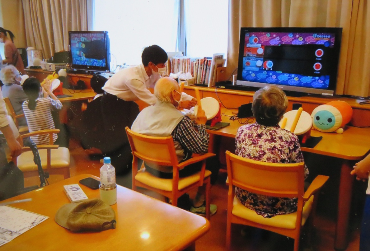 開催は月1回(日)、新さかい幸朋苑デイサービスにおいてご利用者と地域の子どもたち(小学生、中学生、高校生)が一緒になって「太鼓の達人」と「卓上ゲーム」を楽しみます。