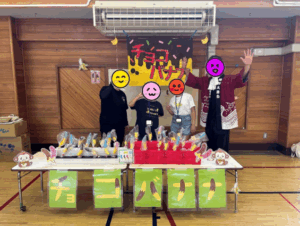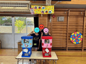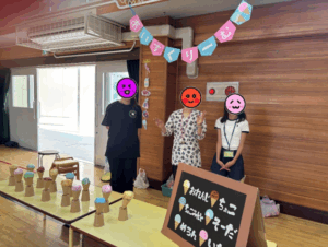 子どもたちが製作したかき氷やチョコバナナ、たこやき、アイスクリームをお店に並べ、くじ引きや的当て、ヨーヨーすくいや金魚すくいなどのゲームコーナーも設置し、大盛況となりました。