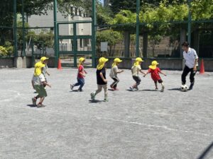 楽しみにしていたサッカー教室が始まりました!笑顔でボールを追いかける子どもたちです!