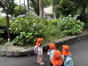 この時期ならではの紫陽花。「きれい!」「いろんな色があるね!」