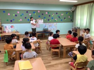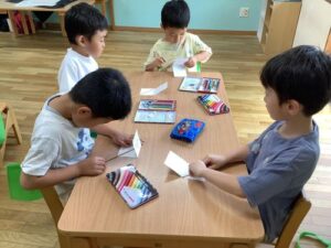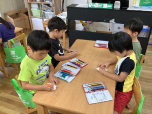 本日(7/9)は5歳児クラスで学研のかがくタイムがありました。今回はテーマは「目」についてでした。
