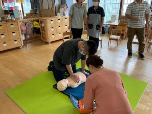 1年に1度行っている職員向けのAED講習を受けました。