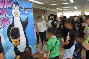 ペンギンの持っている籠に魚を入れるゲーム バルーンアート体験