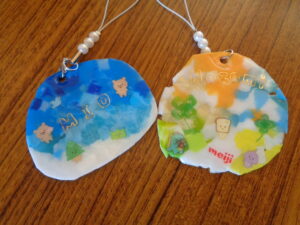 世界に一つだけの「エコキャップキーホルダー」が完成しました。