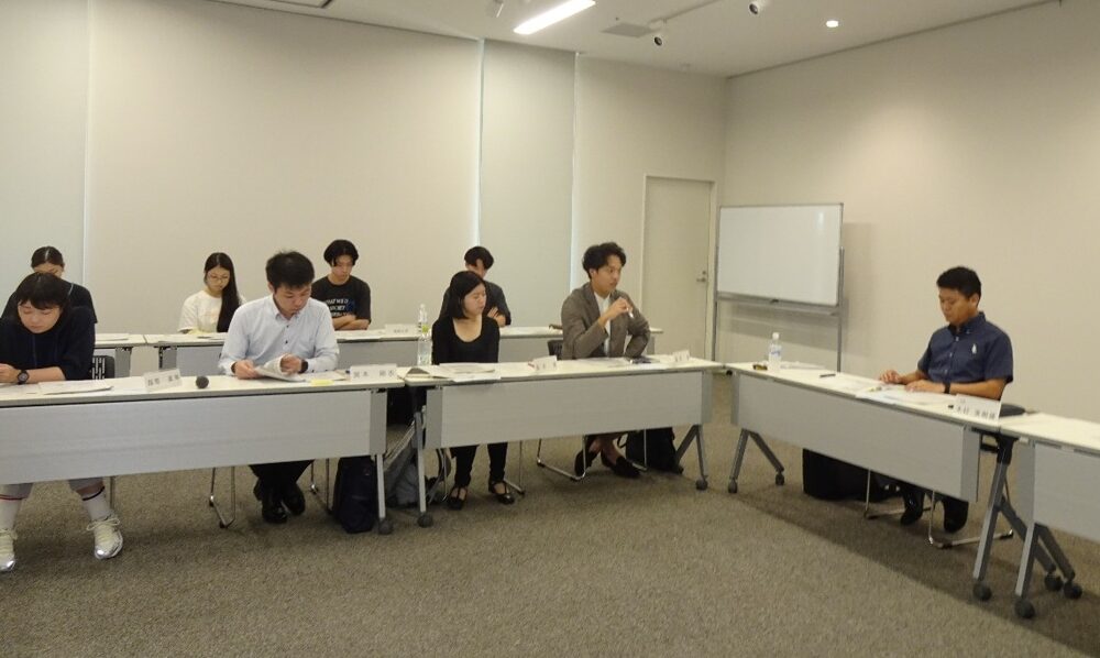 市の施策に対して意見を述べる森原委員(右から2人目)= R7.8.29みなとテラス会議室