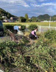 9月28日(日)に なんぶ幸朋苑、グループホームなるみ敷地内の除草作業と加茂川周辺のごみ拾いを行いました。 秋晴れの中、職員ボランティア、キッズタウンさくらの先生方、奥谷自治会の方々に参加いただきました。皆様の協力のおかげでとても綺麗になりました。