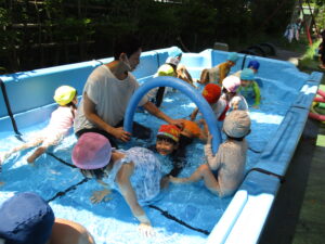 夏の初めは水が苦手だった子も、少しずつ慣れて上手にできるようになりました。